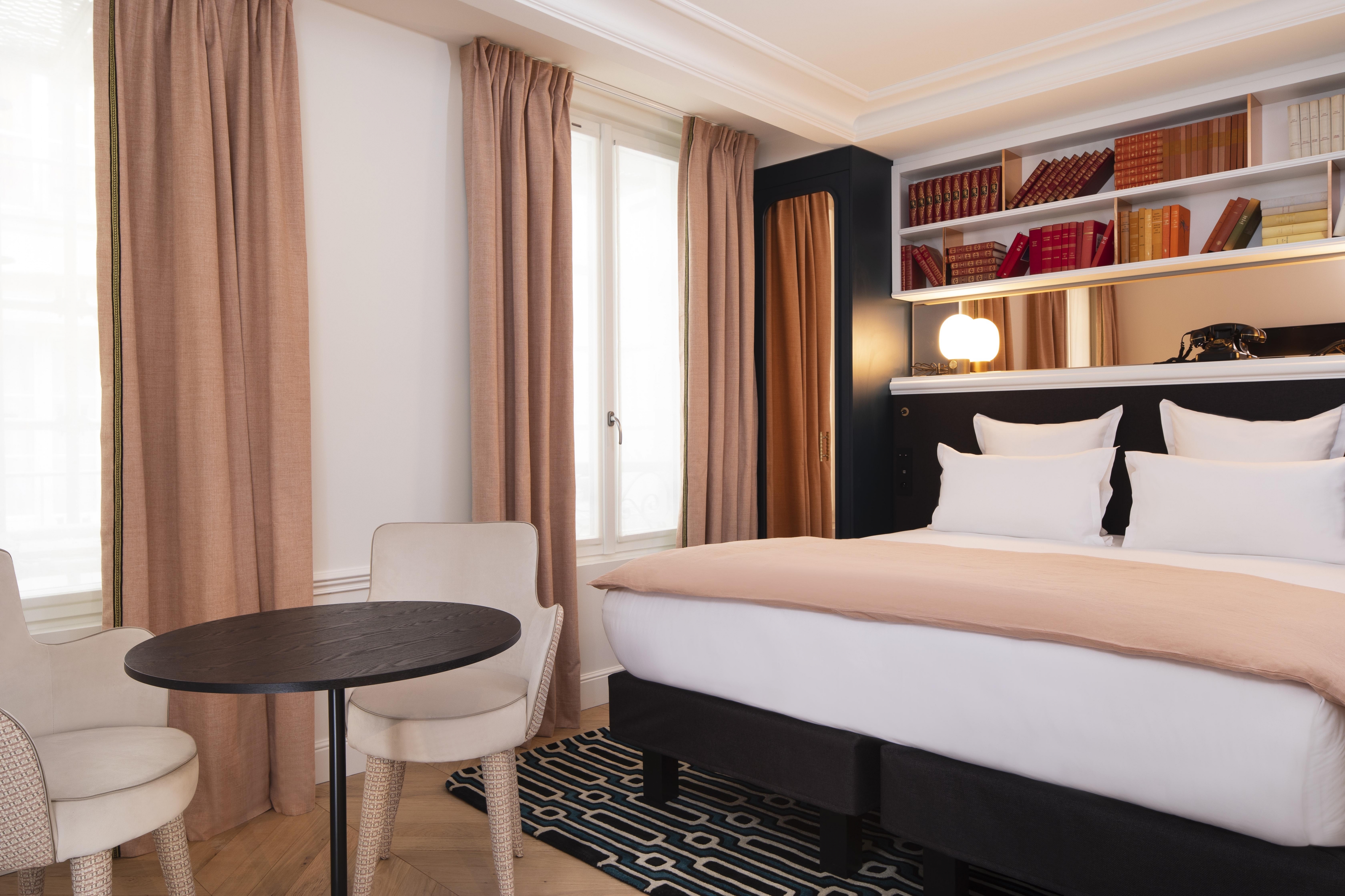 In a hushed and refined atmosphere in shades of sky blue, these quiet rooms overlook the hotel's inner courtyard and offer a real cocoon of calm after a visit to Paris.